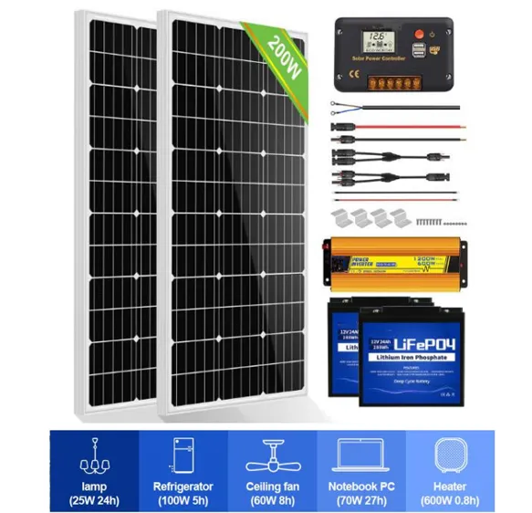 200W 12V Complete Off Grid Solar Panel Kit